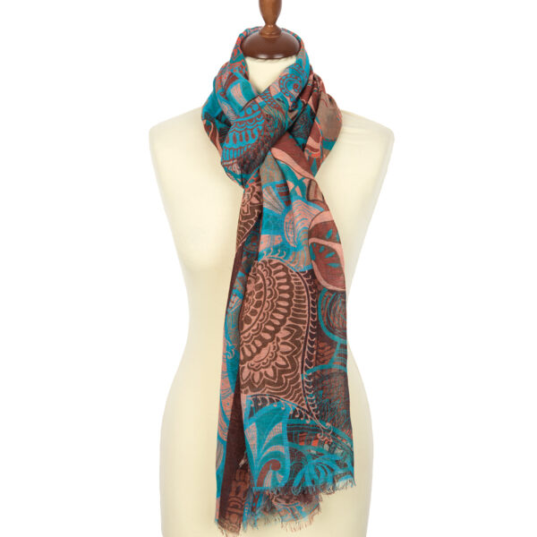 This 100 % wool stole is naturally soft, breathable and warm. Elegant and non-repeating design creates gorgeous style and complements any outfit.
