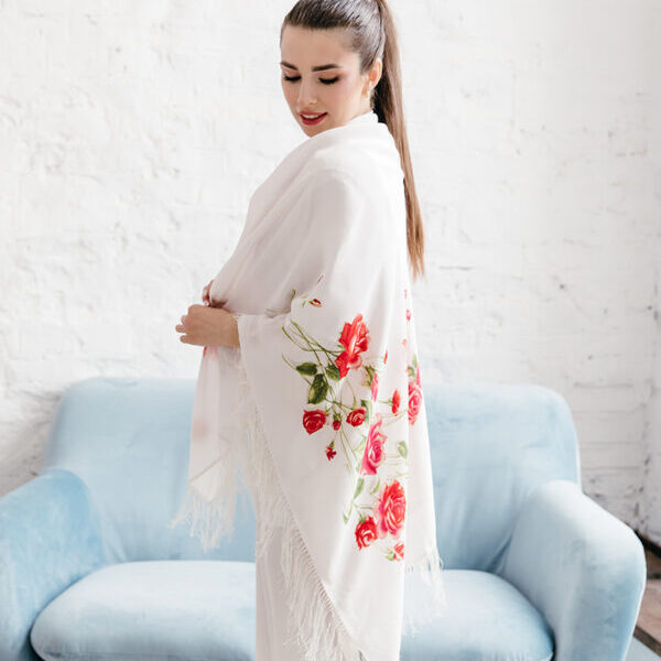 This 100 % wool shawl with silk fringe is naturally soft, breathable, and warm. Traditional and non-repeating design creates gorgeous style and complements any outfit. The ideal companion for cold days or cooler evenings!